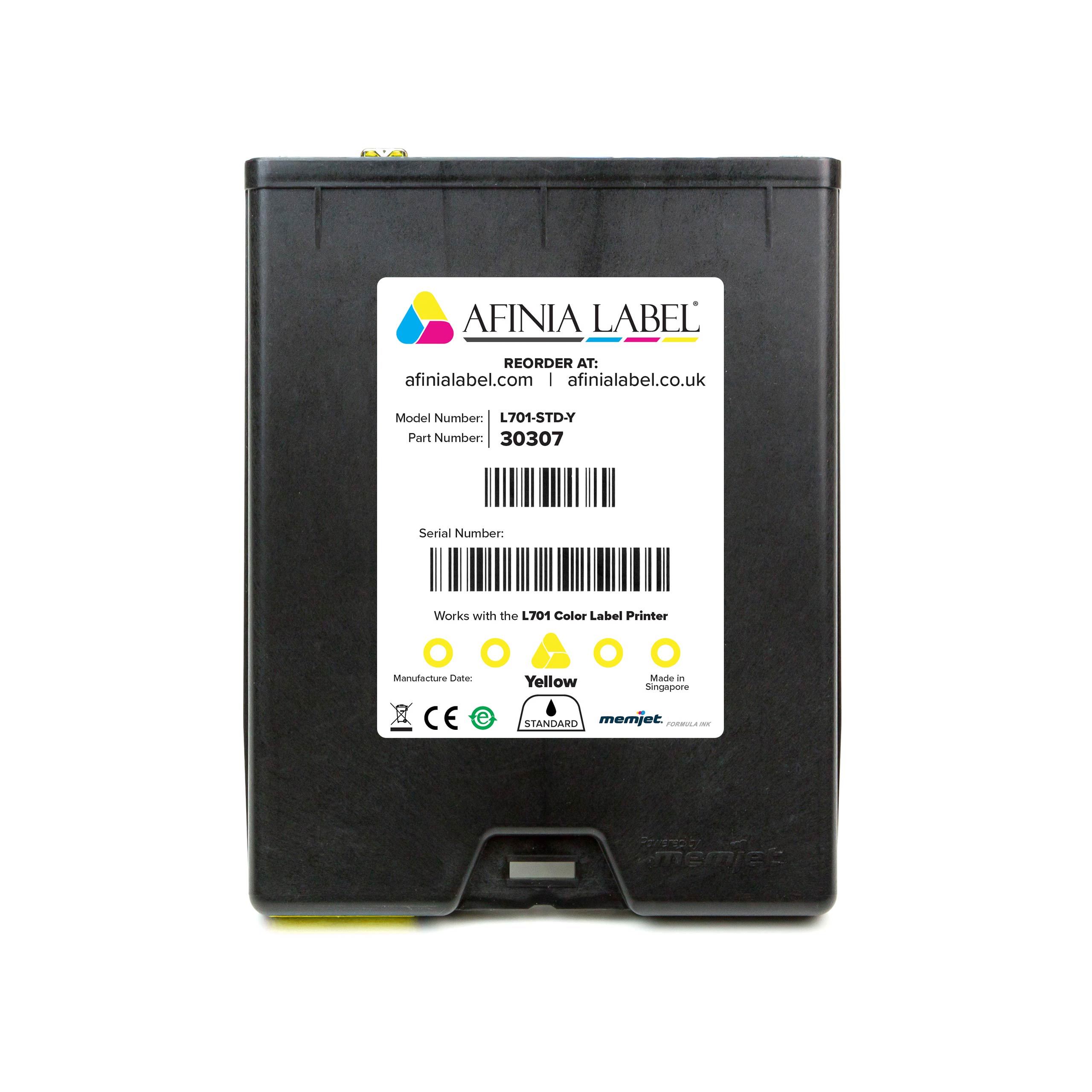 All of the Afinia L701 color and black ink cartridges listed here are OEM for the Afinia L701 Memjet label printer, containing 150ml of dye-based Memjet ink. These are the exact same cartridges that originally came with your L701.